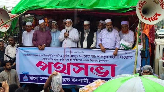 এ সময় আমীরে জামায়াত সমাজের সকল শ্রেণি-পেশার মানুষদের বন্যার্তদের সাহায্যে এগিয়ে আসার উদাত্ত আহ্বান জানান এবং বক্তব্য শেষে সকল প্রকার দুর্যোগের হাত থেকে রক্ষা করতে আল্লাহ তাআলার নিকট দোয়া করেন।