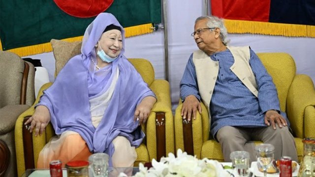 প্রধান উপদেষ্টা বলেন, তার স্বামী সাবেক রাষ্ট্রপতি ও সেনাপ্রধান ও বীর মুক্তিযোদ্ধা জিয়াউর রহমানের মৃত্যুর পর ১৯৮২ সালে গৃহবধূ থেকে রাজনীতির মাঠে আসা বেগম খালেদা জিয়ার বলিষ্ঠ নেতৃত্ব স্বৈরশাসক এরশাদের দীর্ঘ ৯ বছরের দুঃশাসনের পতন ঘটাতে প্রধান ভূমিকা রাখে।