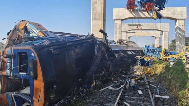 থাইল্যান্ডের নাখোন রাতচাসিমা প্রদেশে বুধবার সকালে এক ভয়াবহ দুর্ঘটনায় অন্তত ২২ জন নিহত এবং আরও কমপক্ষে ৩০ জন আহত হয়েছেন। একটি নির্মাণাধীন ক্রেন ভেঙে পড়ে চলন্ত ট্রেনের ওপর আঘাত করলে এই দুর্ঘটনা ঘটে।বুধবার(১৪ জানুয়ারি) সকালে রাজধানী ব্যাংককের উত্তরে নাখোন রাতচাসিমা প্রদেশে এই দুর্ঘটনা ঘটে বলে বিভিন্ন প্রতিবেদনে জানানো হয়েছে।