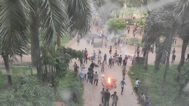 জানা গেছে, বিকেল সাড়ে ৫টার দিকে শিক্ষার্থীদের সঙ্গে পুলিশের ধাওয়া-পাল্টাধাওয়া শুরু হয়। পুলিশ বিক্ষোভকারীদের লক্ষ্য করে টিয়ারশেল, রাবার বুলেট ও ​​লাঠিচার্জ শুরু করে। আন্দোলনকারীরা ছত্রভঙ্গ হয়ে বিশ্ববিদ্যালয়ের বিভিন্ন স্থানে ছড়িয়ে পড়ে। কিছুক্ষণ পর শিক্ষার্থীরা বেরিয়ে এসে পুলিশকে লক্ষ্য করে ইটপাটকেল ছুড়তে থাকে। এতে সংঘর্ষ বাধে। এ ঘটনায় পুলিশ, সাংবাদিক ও শিক্ষার্থীসহ প্রায় ৭০ জন আহত হয়েছেন।
