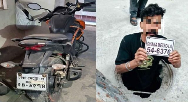 উদ্ধারকৃত মোটরসাইকেল, হেলমেট এবং ভুয়া নম্বর প্লেটটি ডিবির নিকট হস্তান্তর করা হয়েছে।