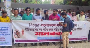 ব্যভিচারে লিপ্ত নর নারীর সমান শাস্তি ও লায়লাকে গ্রেফতারের দাবিতে মানববন্ধন