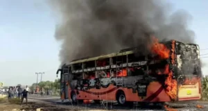 চলন্ত বাসে ভয়াবহ আগুন, পুড়ে মারা গেলেন ২০ যাত্রী
