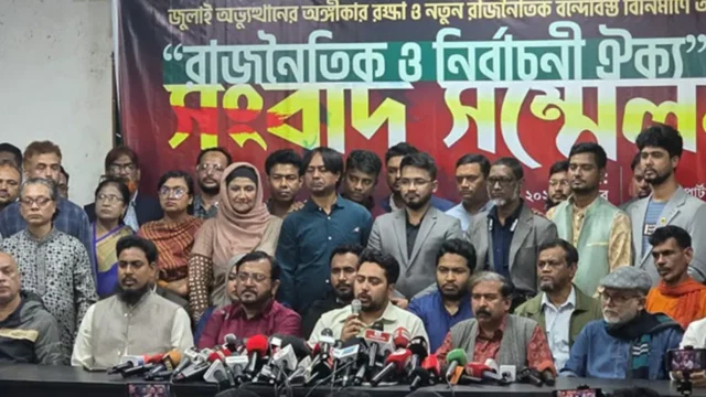 তিনি আরও বলেন, ‘চব্বিশের পরে গত দেড় বছরে আমাদের অনেক জায়গায় হতাশা রয়েছে। ঐকমত্য কমিশনে প্রত্যক্ষ এবং পরোক্ষভাবে নানা শক্তি নানাভাবেই সংস্কারের বিরোধিতা করেছে এবং বাধাগ্রস্ত করার চেষ্টা করেছে। এ অবস্থায় সংস্কারের পক্ষে আমরা তিন দল আজ ঐক্যবদ্ধ হয়েছি। এই ঐক্য প্রক্রিয়া চলমান থাকবে।’