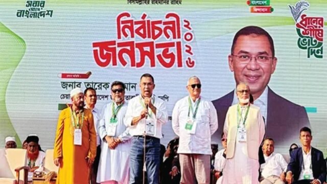 ২৪ সালের ৫ই আগস্ট দেশের গণতন্ত্র ও স্বাধীনতা রক্ষার আন্দোলনে আমরা বিজয়ী হয়েছি। এটা ধরে রাখতে হবে। তারেক রহমান বলেন, আমরা দেখেছি গত ১৫-১৬ বছর অন্য দেশের কাছে কীভাবে বাংলাদেশকে বিক্রি করে দেয়া হয়েছে। এজন্য আমি আগে বলেছি দিল্লি নয়, পিন্ডি নয়, অন্যদেশ নয়, সবার আগে বাংলাদেশ। আমি আরেকটি কথা বলেছিলাম, স্বৈরাচার সরকার যখন মানুষের ঘাড়ে চড়ে বসেছিল, সেটা হচ্ছে ‘টেক ব্যাক বাংলাদেশ’। আমরা টেক ব্যাক বাংলাদেশের’ অর্ধেক পথে এসেছি। আমরা স্বৈরাচারমুক্ত হয়েছি, গণতন্ত্রের যাত্রা শুরু করেছি। ১২ তারিখে ধানের শীষকে নির্বাচিত করার মধ্য দিয়ে গণতন্ত্রের যাত্রা শুরু হবে। আমরা বিজয়ী হলে জিয়াউর রহমানের মতো খাল খনন করতে চাই। এ সময় উপস্থিত সবাইকে নিয়ে তিনি স্ল্লোগান দেন। বলেন- করবো কাজ গড়ব দেশ, সবার আগে বাংলাদেশ। তিনি বলেন, এই অঞ্চলের মানুষ লন্ডন প্রবাসী বেশি। লন্ডন যেতে যতসময় লাগে তার চেয়ে বেশি সময় লাগে ঢাকা যেতে। আমি এখানে আসার পথে সড়কের এমন বেহাল দশা দেখেছি। খালেদা জিয়া ও সাইফুর রহমানের আমলের উন্নয়নের পর এ অঞ্চলে আর উন্নয়নের ছোঁয়া লাগেনি। বিগত ফ্যাসিস্টরা কেবল গুম, খুন, গণতন্ত্র, বাকস্বাধীনতা, আইনের শাসন হরণ করেনি। এদেশের টাকা লুট করে বিদেশে পাচার করেছে। দেশের অর্থনীতি ধ্বংস করেছে। বিগত বছরগুলোতে উন্নয়নের মেগা প্রকল্পের নামে দেশের সম্পদ লুট করা হয়েছে আর এখন একটি দল দেশে অরাজকতা সৃষ্টি করার চেষ্টা করছে।