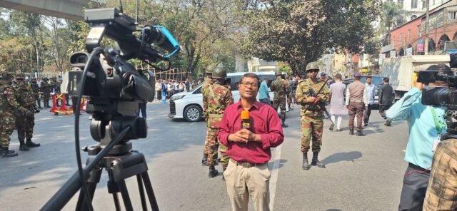 পাশেই একাত্তর টিভির রিপোর্টার লাইভ দিচ্ছিলেন। সেখানে ঢুকে গেলেন সেই ভদ্রলোক। এরপর সেখান থেকেও তাঁকে সরানো হলো।