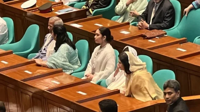 জাতীয় সংসদ অধিবেশনের দর্শক সারিতে সদ্য সাবেক অন্তর্বতী সরকারের প্রধান উপদেষ্টা অধ্যাপক ড. মুহাম্মদ ইউনূস, সেনাপ্রধান ওয়াকার–উজ–জামান, প্রধানমন্ত্রী তারেক রহমানের স্ত্রী জুবায়দা রহমান, কন্যা জাইমা রহমানসহ নৌবাহিনী ও বিমানবাহিনী প্রধান প্রমুখ উপস্থিত আছেন।