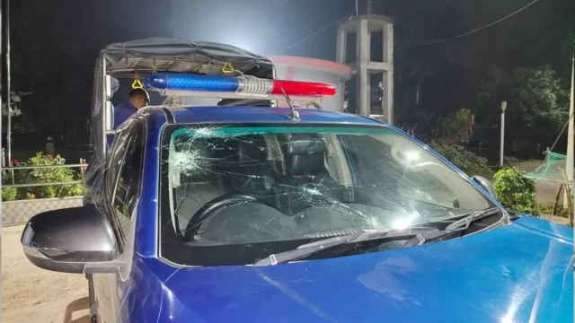 বৃহস্পতিবার ( ১৯ মার্চ) রাত ৮টার দিকে কুমারখালী পৌরসভার ৩ নম্বর ওয়ার্ড এলংগীপাড়ায় এ ঘটনা ঘটে। এতে ওসির ব্যবহৃত গাড়িটির সামনের গ্লাস ভেঙে যায়।