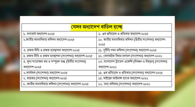 যে ১৬টি অধ্যাদেশ বাতিল হচ্ছে