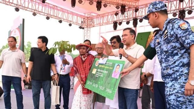 ‘কৃষক কার্ড’ উদ্বোধনের পর কৃষকদের ফলের গাছ উপহার দিয়েছেন প্রধানমন্ত্রী তারেক রহমান। মঙ্গলবার (১৪ এপ্রিল) টাঙ্গাইলের শহীদ মারুফ স্টেডিয়ামে প্রথম ধাপে এই কার্ড বিতরণের উদ্বোধন করেন তিনি। এ সময় তিনি কৃষকদের বলেন, ‘আম ও জাম ফল ধরলে আমাকে পাঠাবেন।’