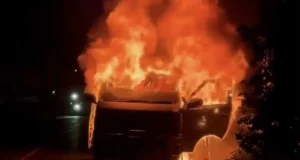 চলন্ত অ্যাম্বুল্যান্সে আগুন