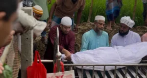গাড়ি থামিয়ে কবরে নেমে মরদেহ দাফনে অংশ নিলেন তথ্য প্রতিমন্ত্রী