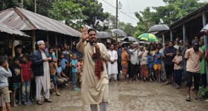 বক্তব্য দিতে কাদামাটিতে খালি পায়ে নেমে এলেন আখতার